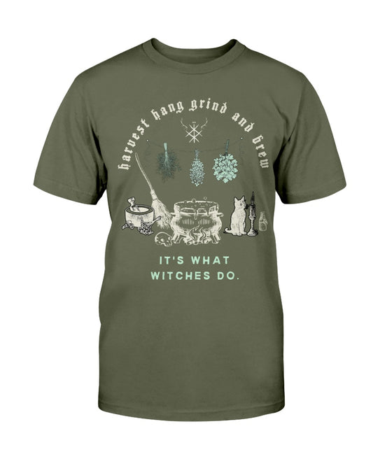 Harvest Hang Grind and Brew It's What Witches Do Tee