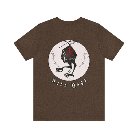 Baba Yaga Hut on chicken legs Back ᚾ THE OFFBEAT RUNARS CO. Unisex Jersey Short Sleeve Tee