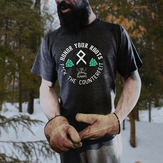 Honor Your Roots F*ck The Counterfeit ᚾ THE OFFBEAT RUNARS CO. ᚾ Unisex Jersey Short Sleeve Tee